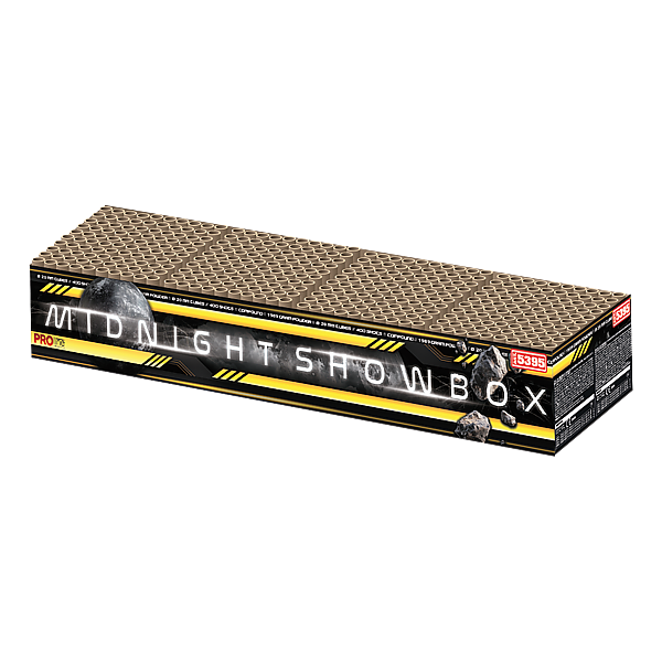 De Midnight Showbox van PRO-line Fireworks is een compound met maar liefst 400 schoten! De tubes zijn uitgewerkt in 20mm tubesize, met een heerlijk snelle verbinding, want gang is alles. In moordend tempo ramt deze 400 shots compound zijn effecten per salvo de lucht in. Diverse kleuren en variaties bouwen op, waarna de finale een overtreffende show neerzet. De showbox om je eigen vuurwerkshow neer te zetten!