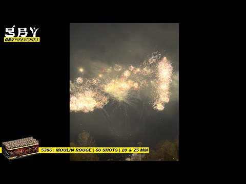 Moulin Rouge, een zeer sierlijke compound met 60 schoten siervuurwerk in 25mm kaliber. Prachtig geschoten in fanshape ontpoppen voornamelijk rood en goud aan de horizon. Afgewisseld met I-shape ghost-effecten en heerlijke blinkers bouwd de compound snel op naar een ultieme finale.